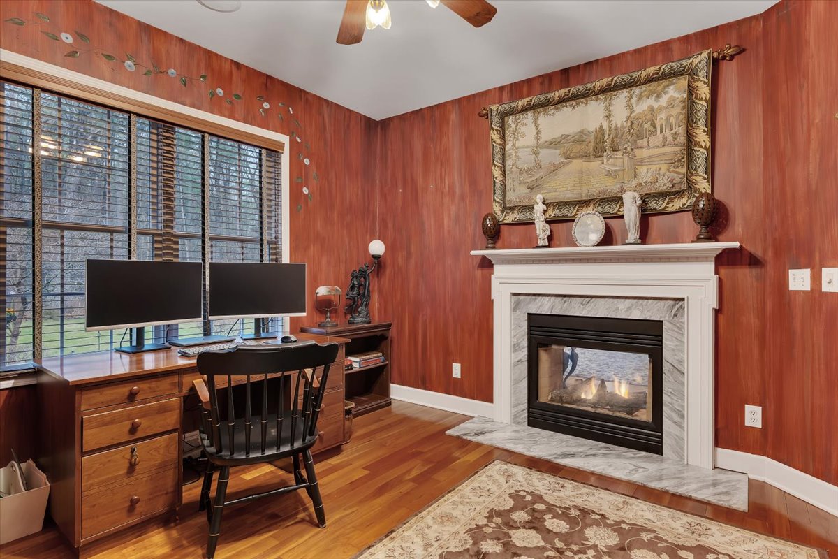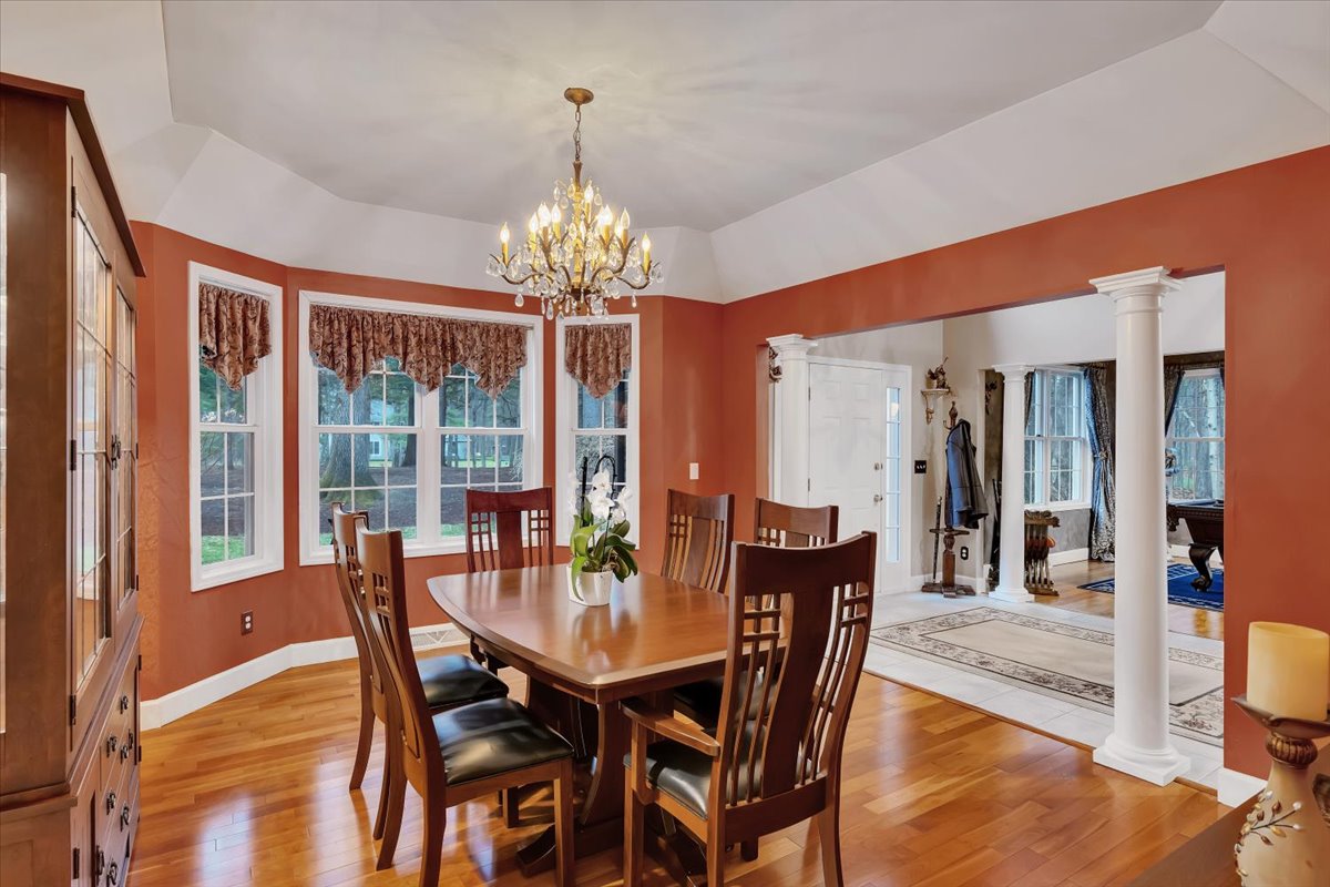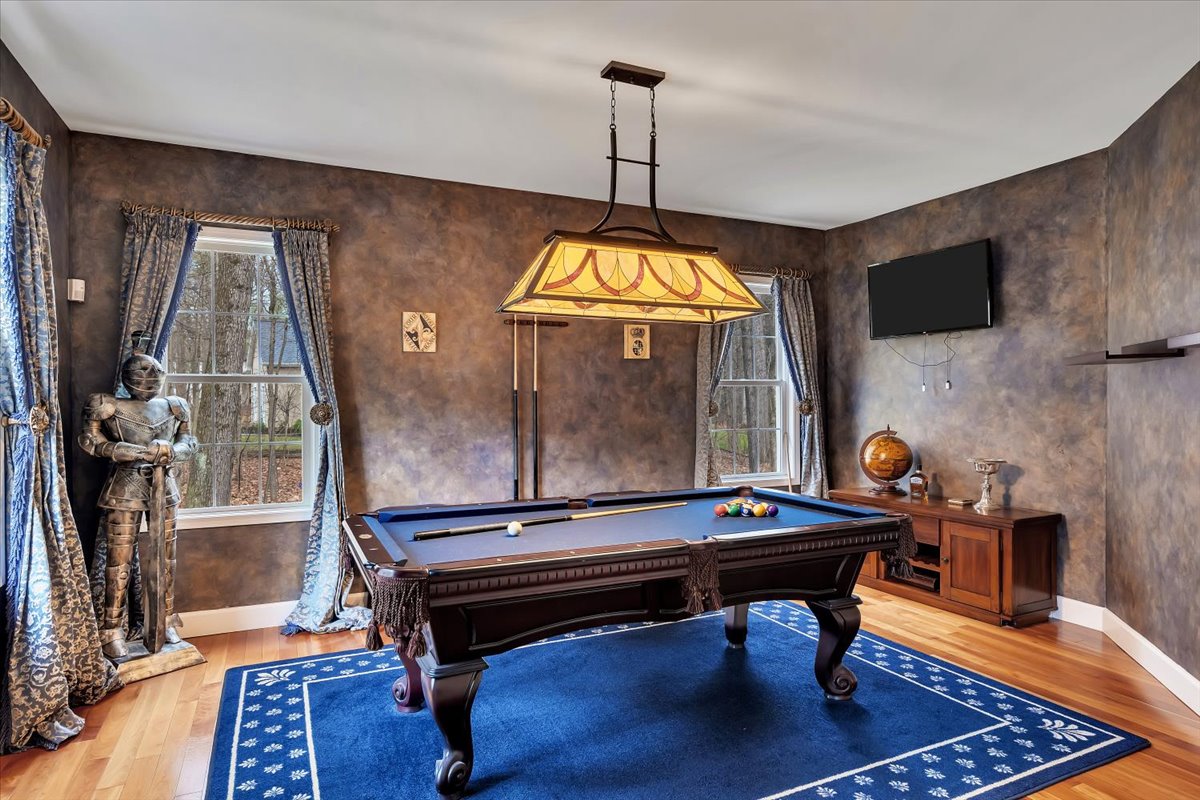 Nestled in the coveted Meadowbrook neighborhood of Saratoga Springs, this refined estate is set on 3.07 private acres, offering a rare combination of elegance, scale, and serene seclusion just minutes from downtown and the Saratoga Race Course. This residence features 5 bedrooms, 4.5 baths and a 3 car garage. The primary suite is a private retreat, featuring vaulted ceilings, a three-sided fireplace, and a renovated spa-like bath with dual vanities and closets. The beautifully appointed guest suite has the flexibility to serve as an additional primary. The open kitchen concept and dining area serves as the heart of the home, balancing function and flow. Furthermore, the home centers around a dramatic main living room with soaring vaulted ceilings and a striking see through fireplace shared with a private office, creating a warm yet sophisticated focal point. A formal dining room, billiards room, and dedicated bar area enhance the home’s versatile entertaining spaces. The lower level expands the living experience with a fully equipped bar, recreation room, additional fireplace, gym, and abundant storage–ideal for both entertaining and relaxation. Outdoors, the property transforms into a private, park-like sanctuary. A bluestone patio anchors the outdoor living space, complemented by custom hardscaping, a built-in grilling area, and a firepit designed for evening gatherings. A charming gazebo adds character, while thoughtfully designed gardens- inspired by the renowned Yaddo Gardens- create a sense of timeless beauty. Meandering private trails wind through the grounds, enhancing both privacy and connection to nature.
