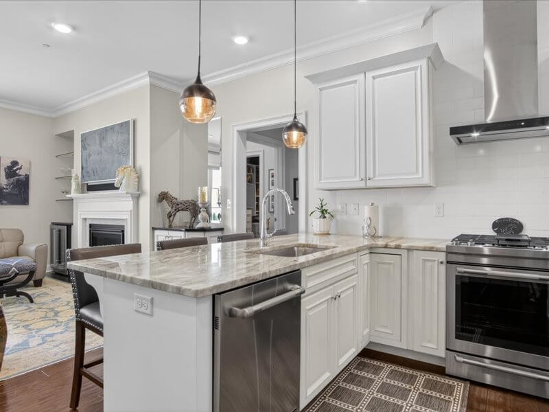 Elegant 2-bedroom, 2-bath condominium perfectly situated on Union Avenue — just down the street from the Saratoga Race Track in downtown Saratoga Springs. This light-filled home features an open floor plan with granite countertops, stainless steel appliances including a gas range, a built-in wine cooler and dry bar, hardwood flooring, spacious tiled baths, custom wallpaper, walk-in closets, and a private terrace with a storage unit. The unit includes two parking spots (tandem) in a secured garage and a second private storage unit on the second floor near the unit. This condo comes fully furnished, turn-key (some art/furniture exclusions apply). Enjoy a truly maintenance-free lifestyle with Congress Park and award-winning Broadway with restaurants and shopping just moments away. Residents also benefit from a secure building entrance and access to a well-equipped fitness center.